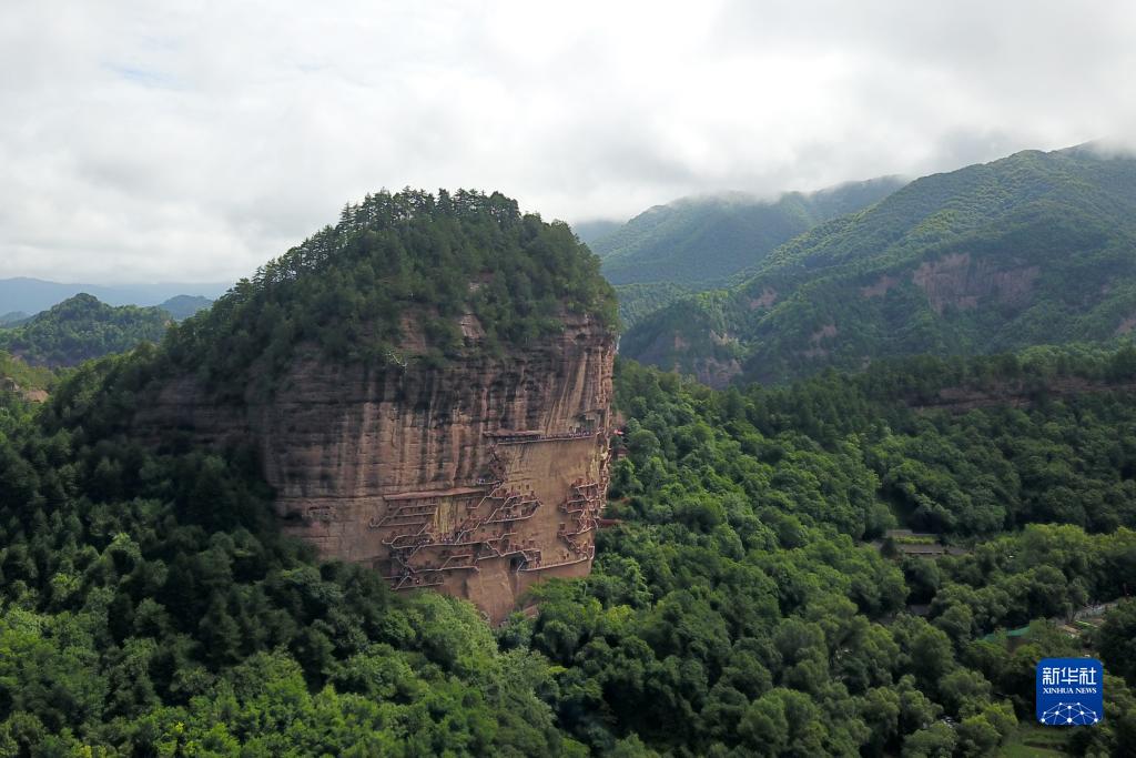 這是7月29日拍攝的麥積山石窟全景(無人機照片)。
