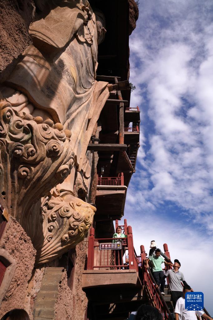 進入暑期,地處甘肅省天水市麥積區的麥積山石窟迎來旅游高峰。為保障游客與文物安全,麥積山石窟藝術研究所優化參觀路線,從7月29日起至8月25日間開啟路線陡峭的應急1號線和路線平緩的應急2號線兩條參觀線路供游客選擇,以此提升游客體驗。麥積山石窟是“中國四大石窟”之一,因其形似麥垛而得名,也是世界文化遺産“絲綢之路:長安-天山廊道的路網”的遺産點之一。