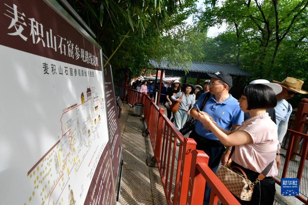 7月30日,游客在麥積山石窟查看參觀線路示意圖。