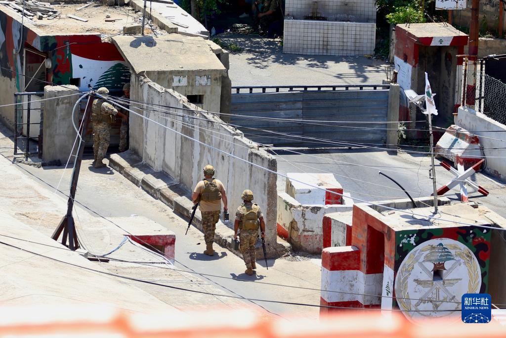 7月30日,黎巴嫩士兵在西頓市附近的艾因·哈勒瓦難民營&&口警戒。