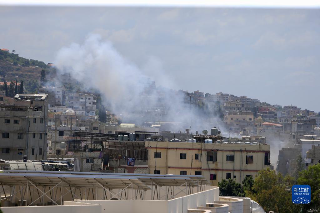 7月30日,黎巴嫩南部西頓市附近的艾因·哈勒瓦難民營升起濃煙。