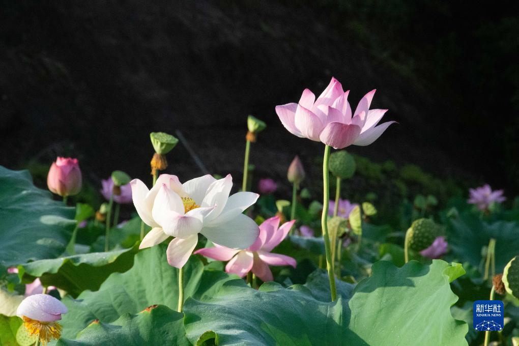 這是7月31日在湖南省湘潭縣花石鎮羅漢村湘蓮種植基地拍攝的荷花。