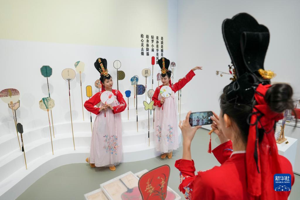 7月31日,《畫游清明上河──故宮沉浸藝術展》展區的幾名演員在拍照留念。