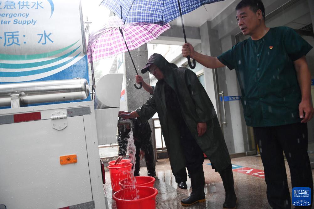 7月31日,在北京市門頭溝區,一輛北京市自來水集團的水車為因強降雨停水的一處療養院供水。