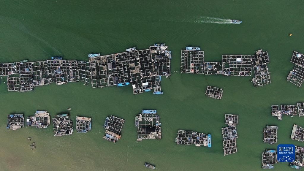 廣東省潮州市饒平縣柘林鎮的海上網箱(7月28日攝,無人機照片)。