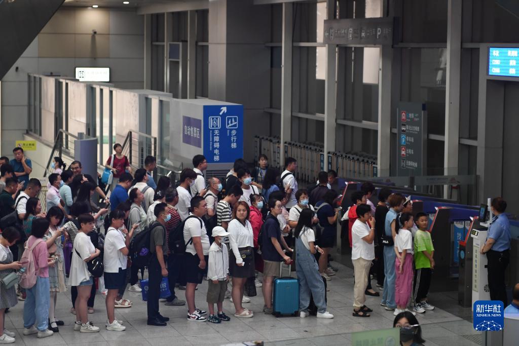 8月1日,旅客在北京南站排隊候車,準備乘坐京津城際列車出行。