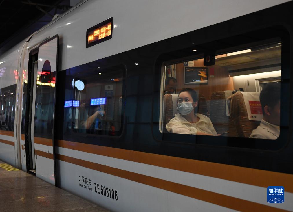 8月1日,在北京南站,旅客乘坐京津城際列車出行。