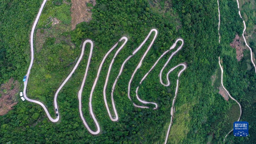 這是廣西那坡縣百省鄉那孟村各酬屯通往百南鄉的“龍拐路”,一里十彎(7月31日攝,無人機照片)。
