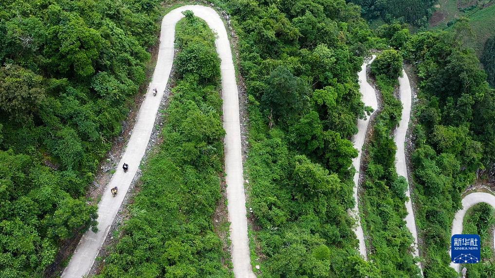 這是廣西那坡縣百省鄉那孟村各酬屯通往百南鄉的“龍拐路”(7月31日攝,無人機照片)。