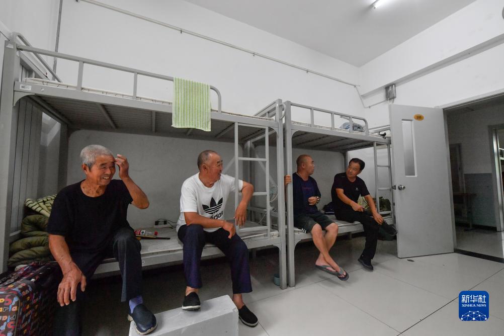 8月1日,在天津市武清區職業教育中心臨時安置點,轉移人員在房間內交談。
