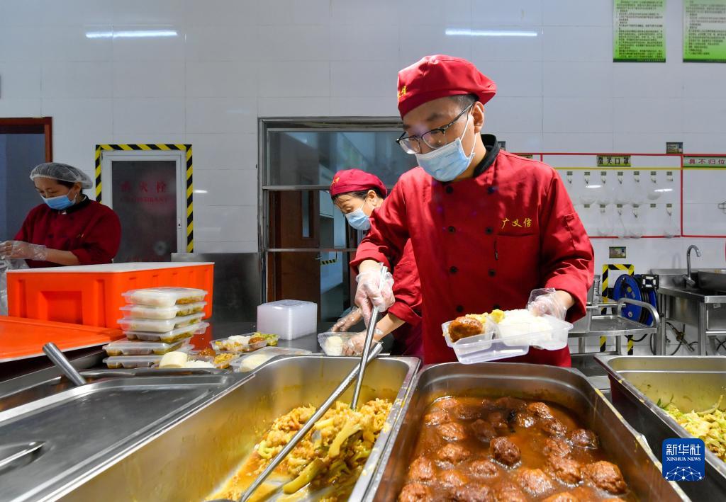 8月1日,在天津市武清區職業教育中心臨時安置點,工作人員為轉移人員準備午飯。