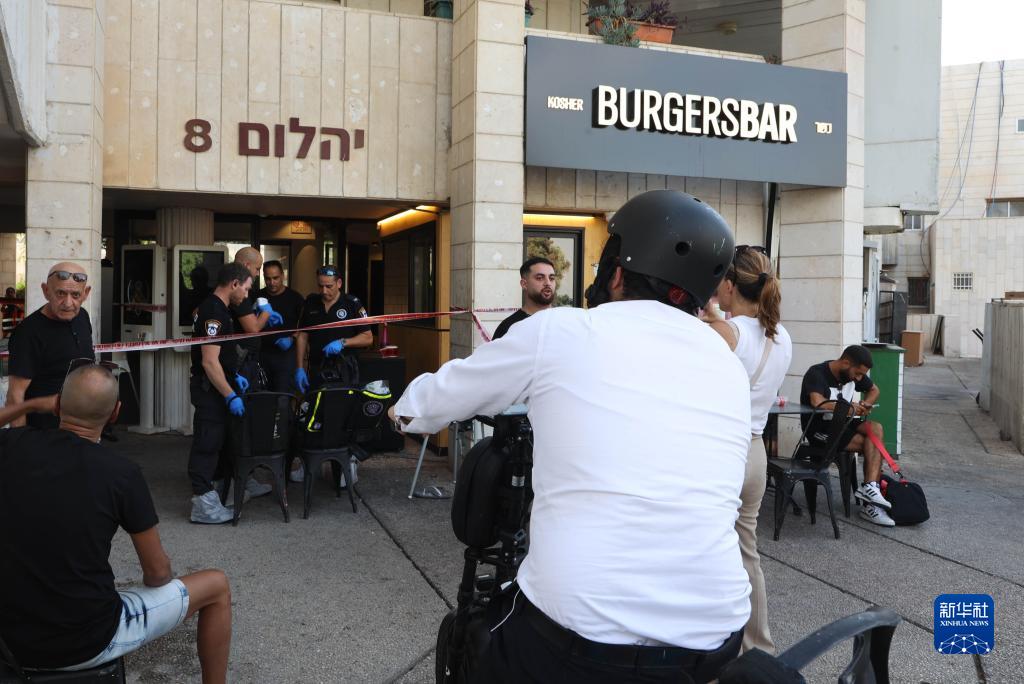 8月1日,在約旦河西岸猶太人定居點馬阿勒阿杜明,以色列警察在襲擊事件現場附近工作。
