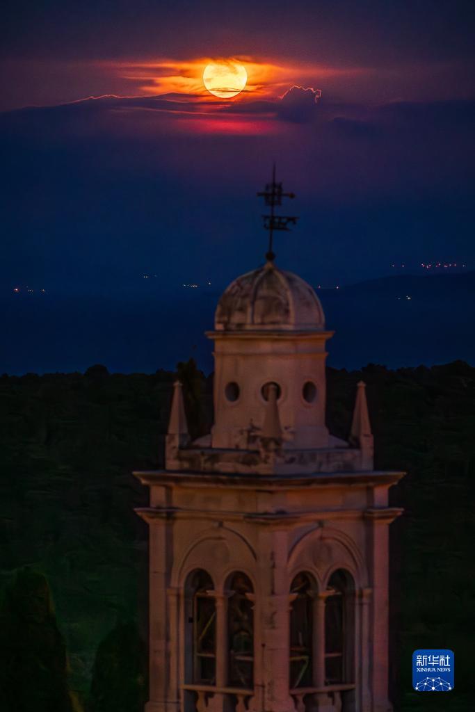 8月1日晚,一輪滿月現身克羅地亞布拉奇島上空。