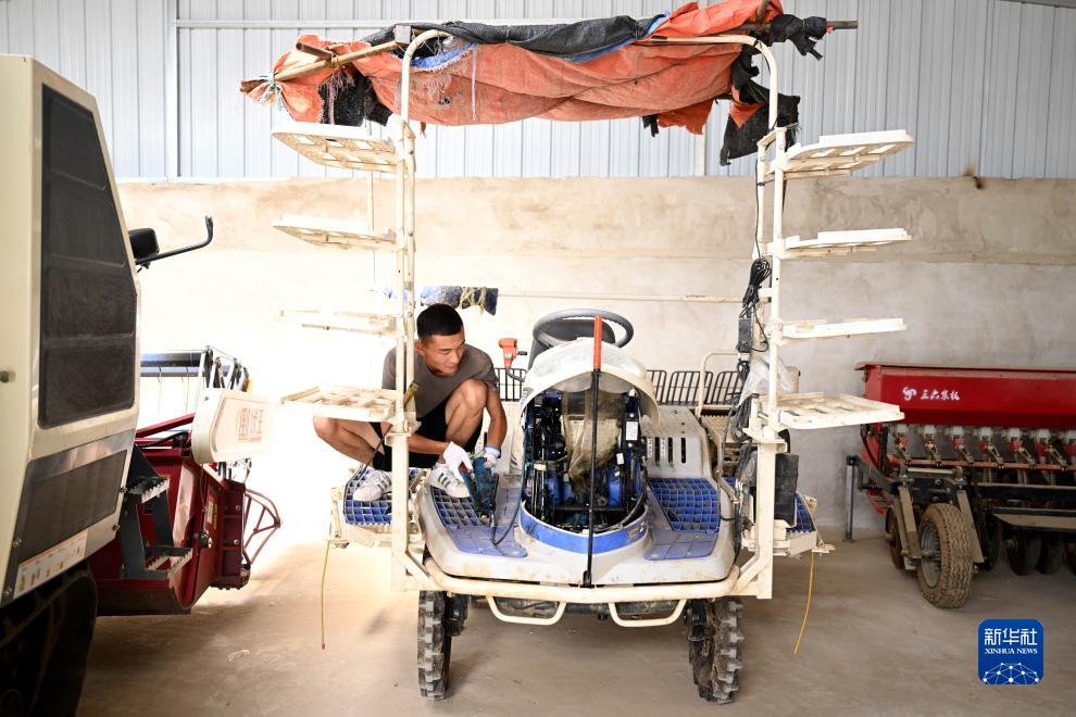 8月1日,在安徽省蚌埠市五河縣澮南鎮楊集村,吳家歡在檢修保養農業機械。