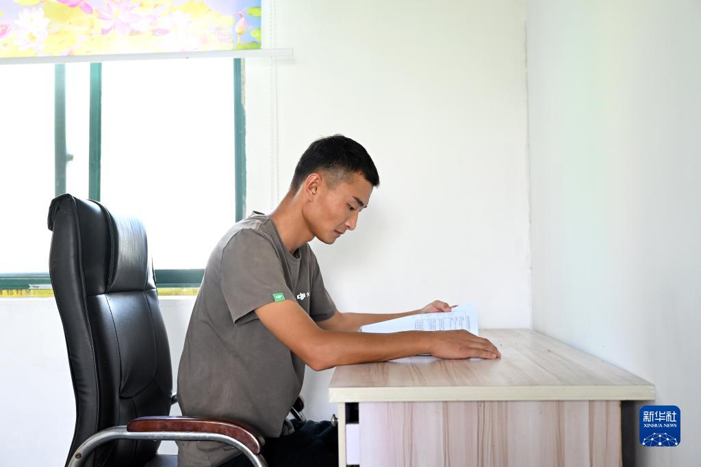 8月1日,在安徽省蚌埠市五河縣澮南鎮楊集村,吳家歡在學習農業機械相關知識。