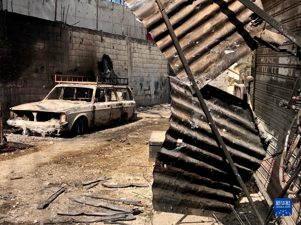這是8月1日在黎巴嫩南部西頓市附近的艾因·哈勒瓦難民營拍攝的受損設施和車輛。