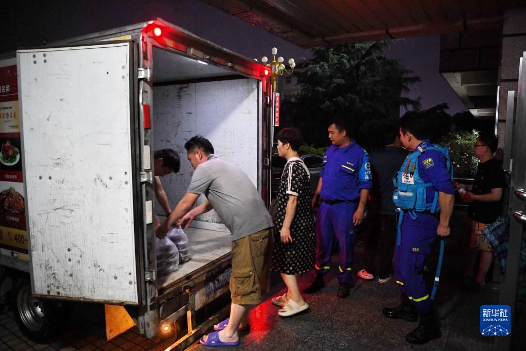 8月1日,河北省涿州市職教中心安置點的工作人員在運送飯菜,準備發放給安置群眾。