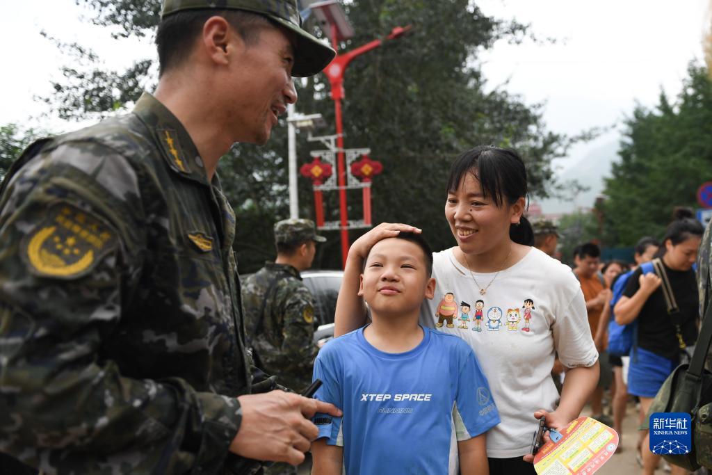 來自內蒙古的三年級小學生武天騏跟隨家人乘坐K396次列車來北京,受強降雨影響被困。8月2日上午,他跟隨家人在武警北京總隊機動三支隊官兵的護送下,從落坡嶺村徒步轉移至妙峰山鎮政府,短暫休整後將繼續轉移至豐&火車站。