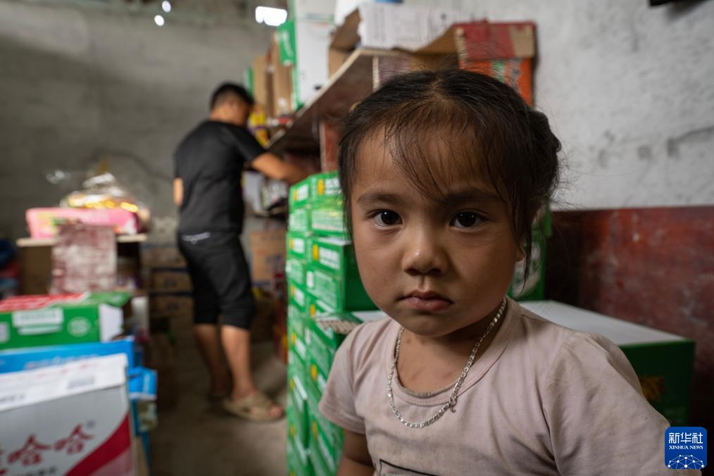 7月31日,吳世榮帶着女兒在商店裏忙碌。新華社記者費茂華攝