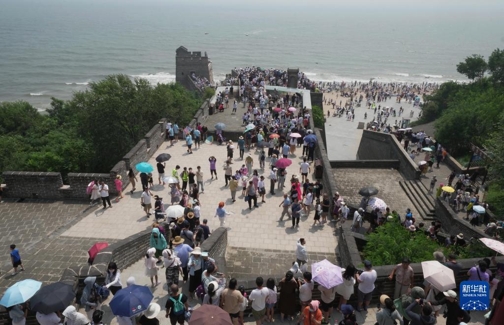8月2日,游客在河北省秦皇島市山海關區老龍頭景區游覽。