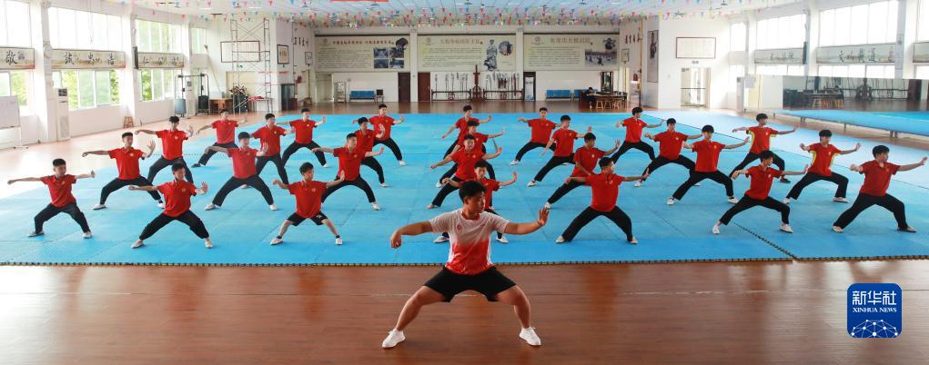 8月1日,學生在河南省焦作市溫縣一家太極拳武校習練太極拳。