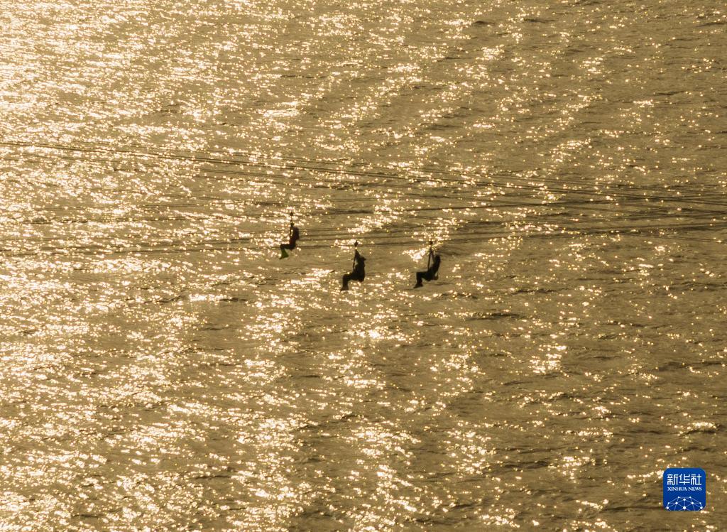 8月2日,游客在寧夏中衛市沙坡頭景區體驗飛渡黃河(無人機照片)。