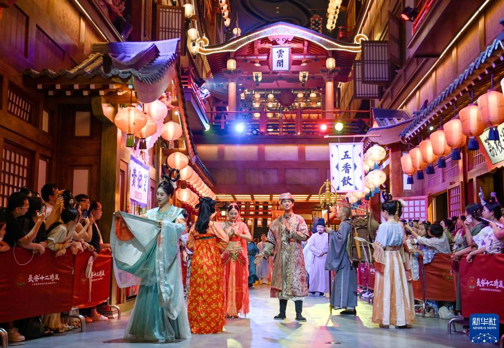 當日,西安長安十二時辰主題街區升級版正式對外開放。一系列互動式唐風演藝打造多個文化消費新場景,為游客提供深度唐風市井文化體驗。今年暑期,以沉浸式體驗、多元業態融合為特色的西安文旅市場熱度不減,品類多元的唐風演藝持續擦亮西安文旅名片,助推文旅融合高質量發展。