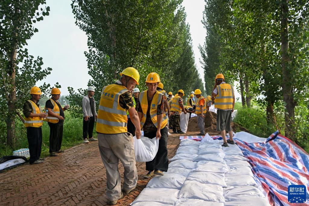 當日,來自中建、中交等多個單位的工人和靜海區當地村民共千餘人忙碌在大清河天津市靜海段南北兩岸,持續進行兩岸堤壩加高加固工作,以應對大清河河道內不斷增長的上游來水。