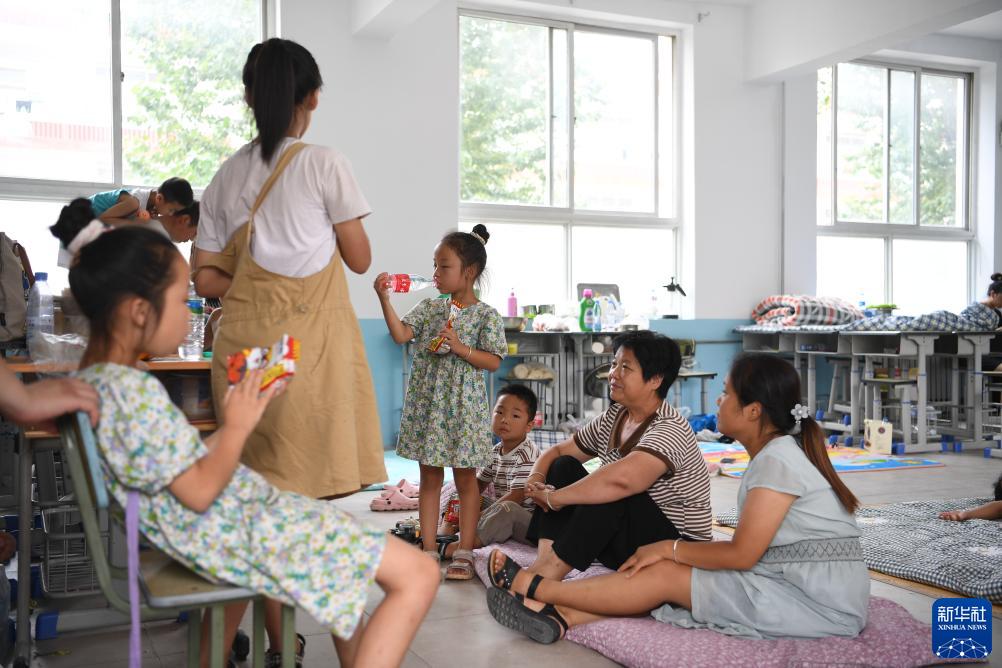 8月3日,群眾在涿州市第三中學安置點內休息。