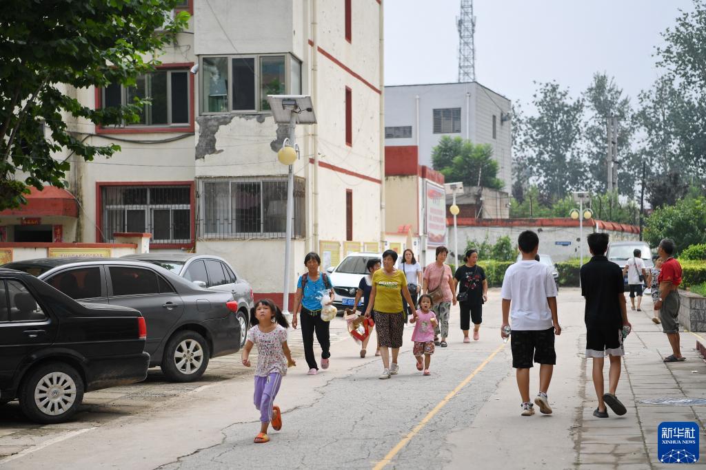 8月3日,群眾在涿州市第三中學安置點內行走。