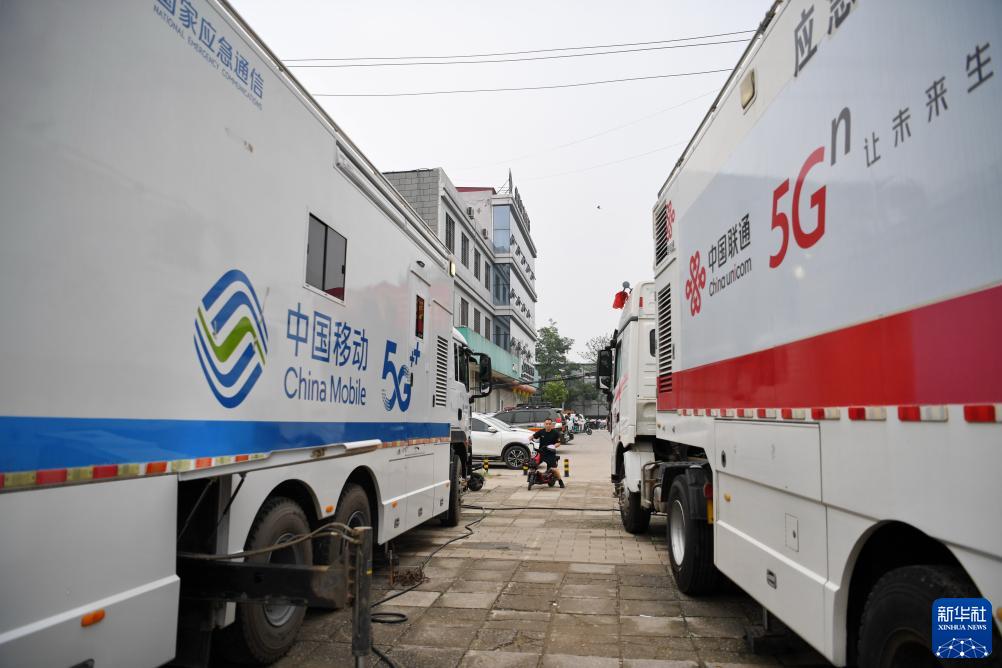 8月3日,應急通訊車輛停靠在涿州市第三中學安置點外。