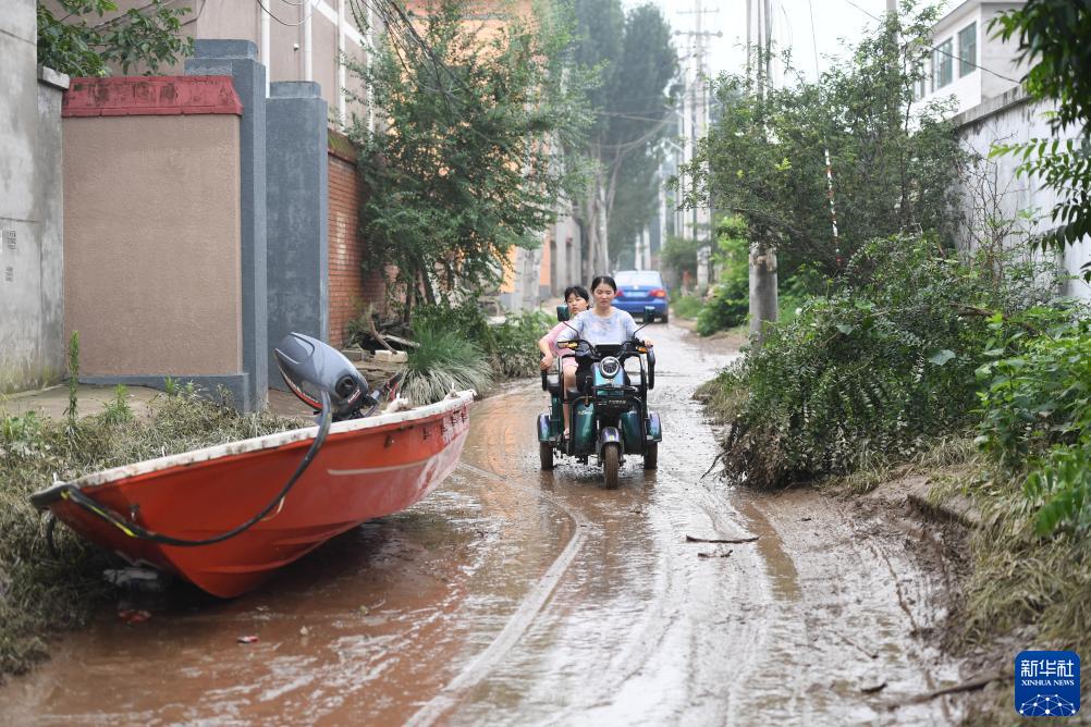 8月3日,涿州市碼頭鎮北高家莊村居民在街道上騎行。