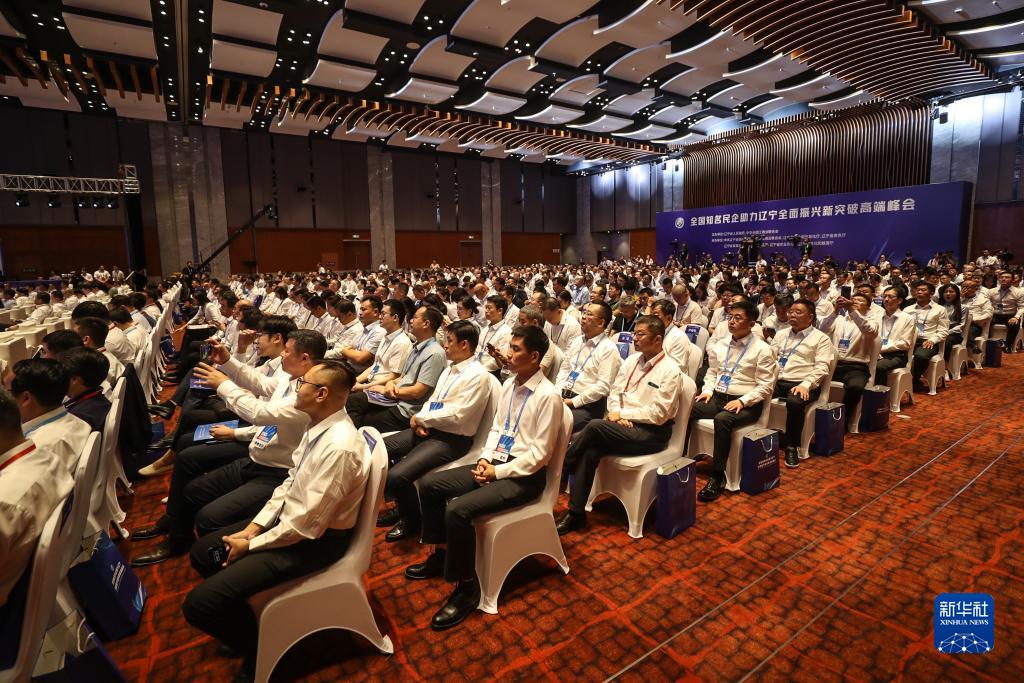 這是8月3日在遼寧瀋陽拍攝的全國知名民企助力遼寧全面振興新突破高端峰會開幕式現場。