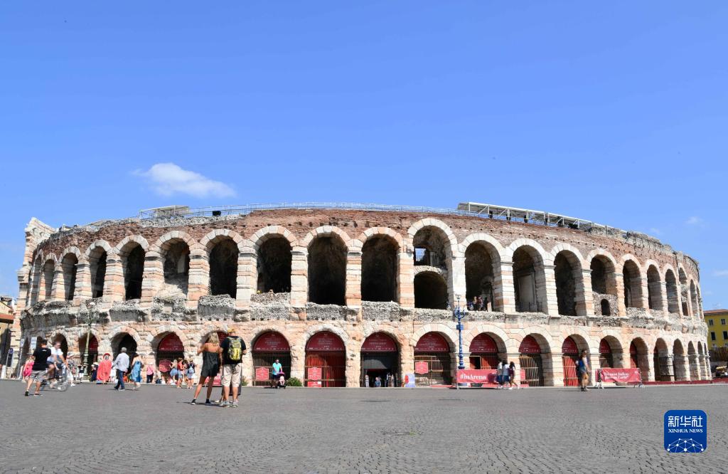 8月2日,游客游覽意大利維羅納圓形競技場。