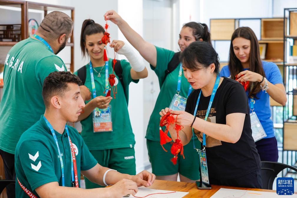 成都大運村裏設置了包括皮影、剪紙、刺繡、草編等非遺項目在內的中國文化體驗項目,吸引眾多代表團成員前來參與。在這裡,各代表團成員可以更加切近地感受、了解中國非遺文化的魅力。