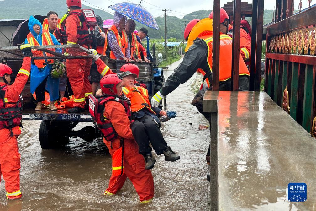 8月4日,在尚志市一面坡鎮萬山村,哈爾濱市森林消防支隊的消防員正在解救被困村民。
