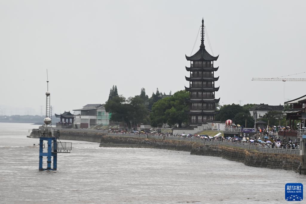 當日是農曆六月十八,號稱“天下第一潮”的錢塘江大潮在海寧鹽官呈現“一線潮”奇觀,吸引眾多游客觀賞。