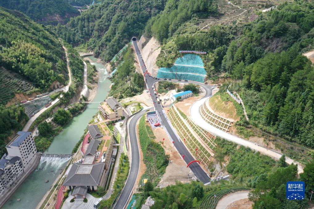 8月4日拍攝的福建省道S207線閩浙界至壽寧下黨段通車儀式現場(無人機照片)。
