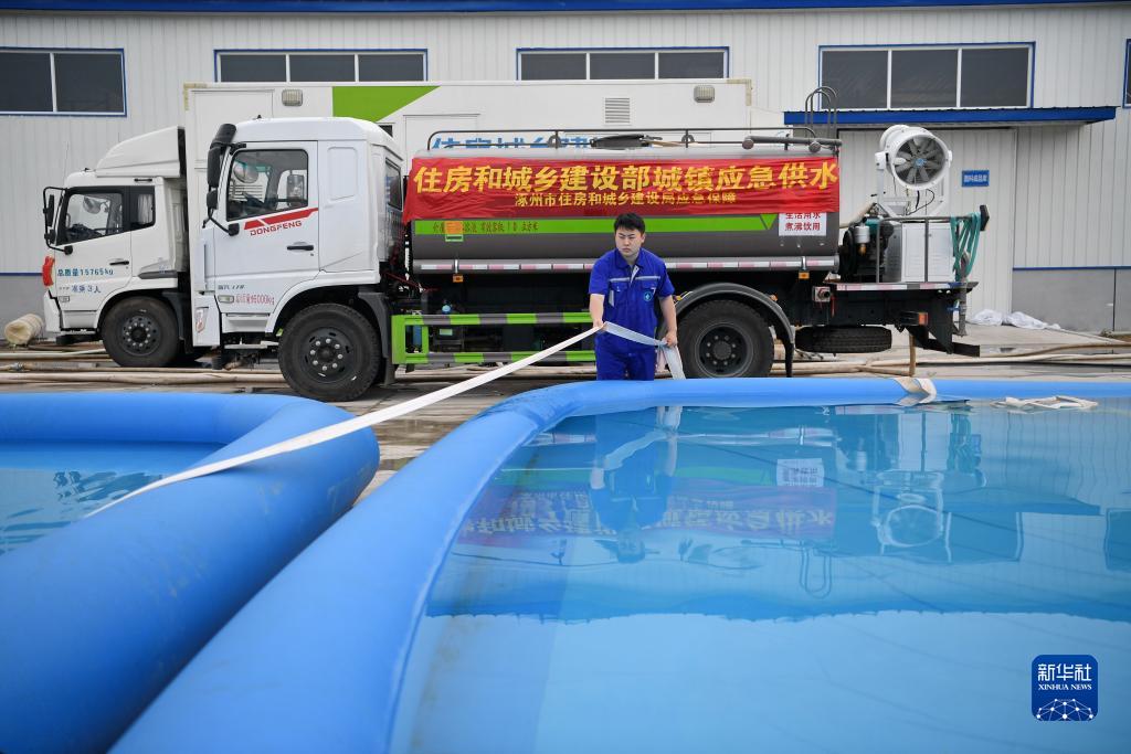 為緩解災後城鎮居民用水難題,目前,河北省涿州市已完成兩個臨時制水供水站點建設,站點內制水、檢測、調試、出水工作已完成。同時,涿州市利用各地市支援的供水罐裝車輛,為嚴重缺水地區供給生活用水。
