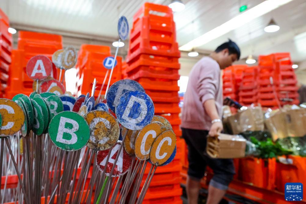 在昆明國際花卉拍賣交易中心,一名質檢員在對鮮花進行質檢分級(7月13日攝)。新華社記者 崔文 攝