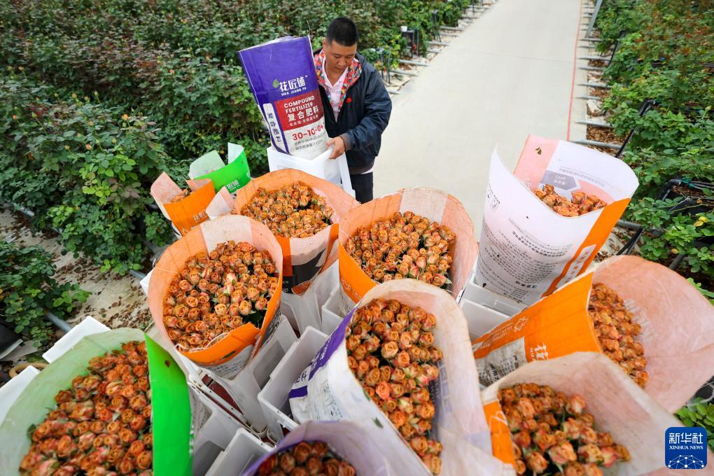 一名花農在雲天化晉寧花卉産業現代化示範園內搬運鮮花(7月12日攝)。新華社記者 崔文 攝