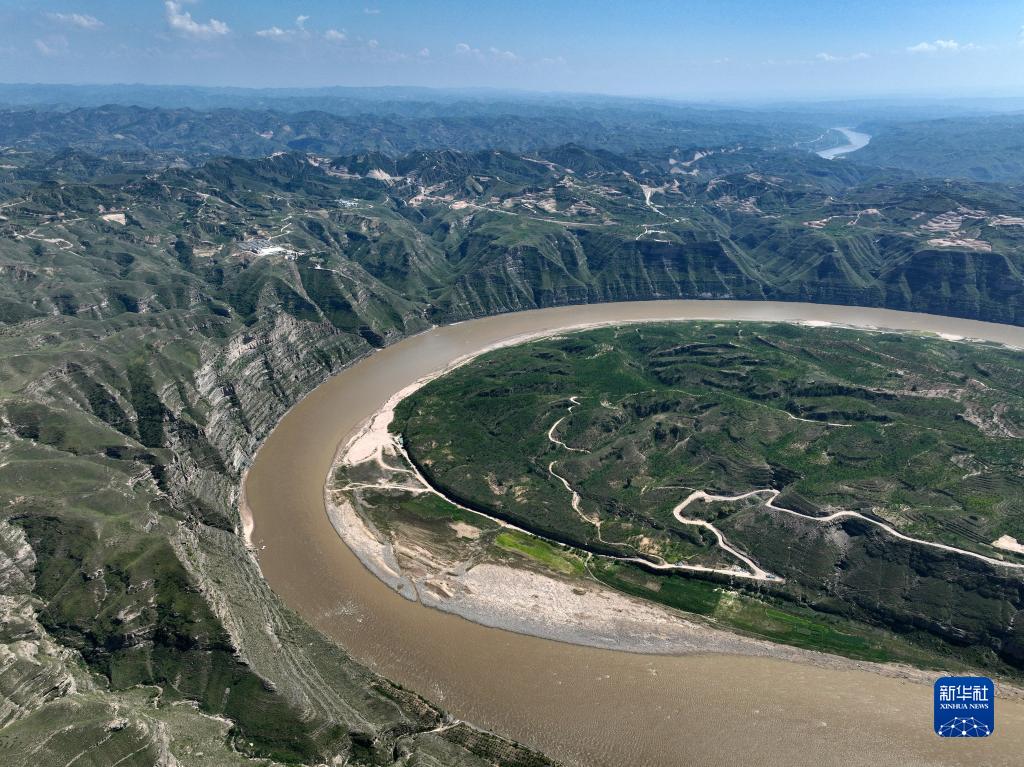 在山西省石樓縣辛關鎮拍攝的黃河奇灣(8月3日攝,無人機照片)。