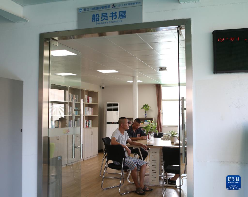 8月4日,船員在綜合服務區的“船員書屋”聊天。