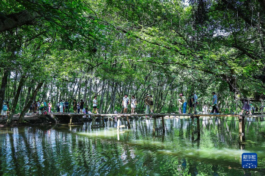 8月4日,游客在黃山市徽州區西溪南鎮西溪南村游覽。