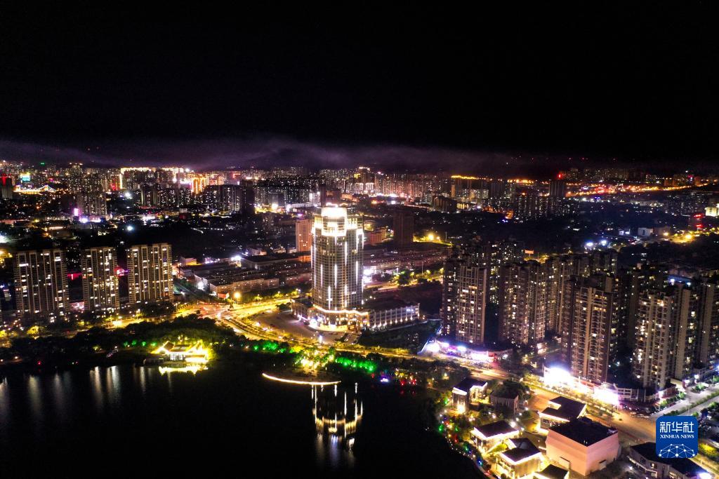 這是7月21日拍攝的欽州市夜景(無人機照片)。
