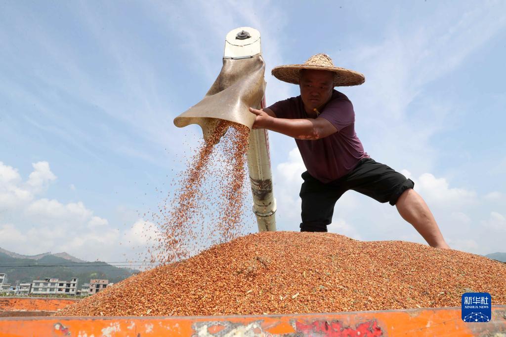 8月5日,農民在貴州省黔東南苗族侗族自治州榕江縣古州鎮車江大壩將收割的高粱裝車。
