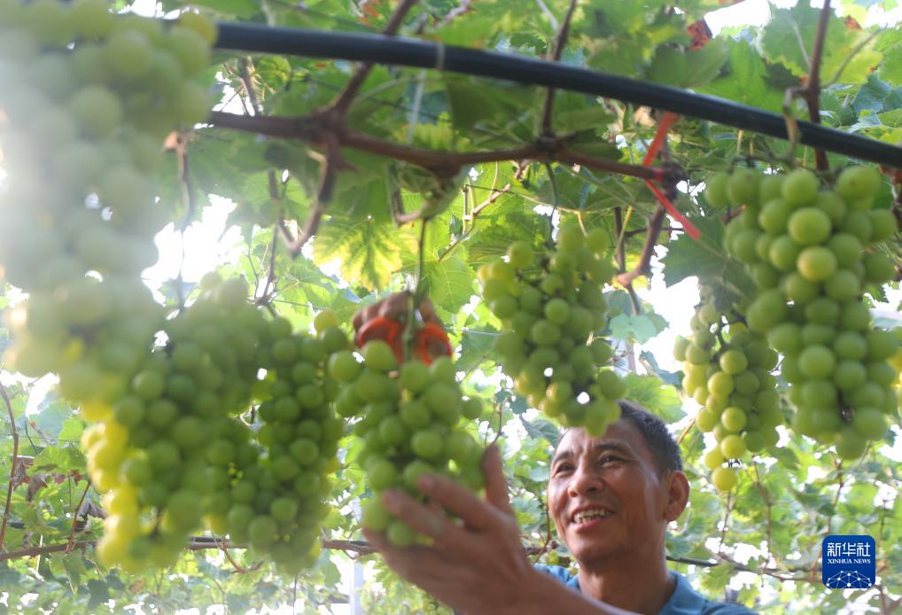 8月5日,湖南省衡陽市衡山縣永和鄉葡萄種植基地,當地村民在採摘陽光玫瑰葡萄。