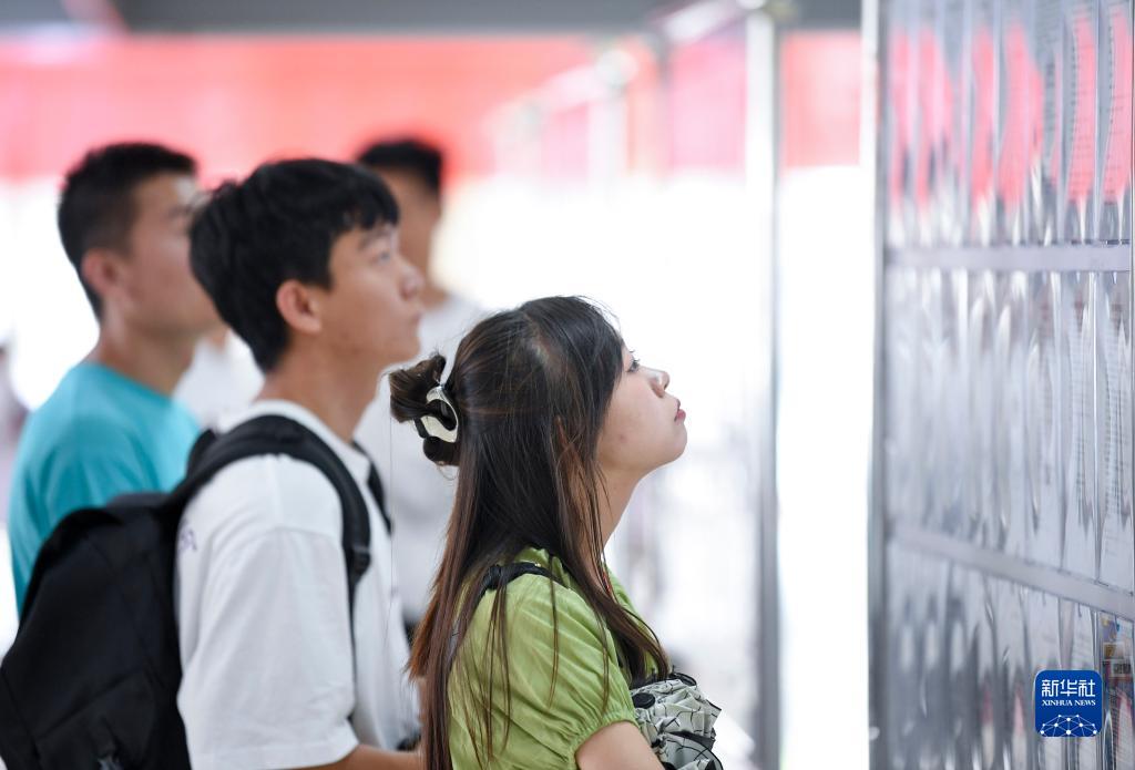 8月5日,求職者在招聘會現場查看崗位信息。