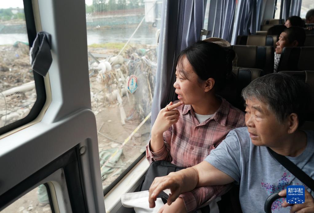 8月5日,北京市房山區青龍湖鎮口頭村村民乘坐大巴從安置點前往口頭村。