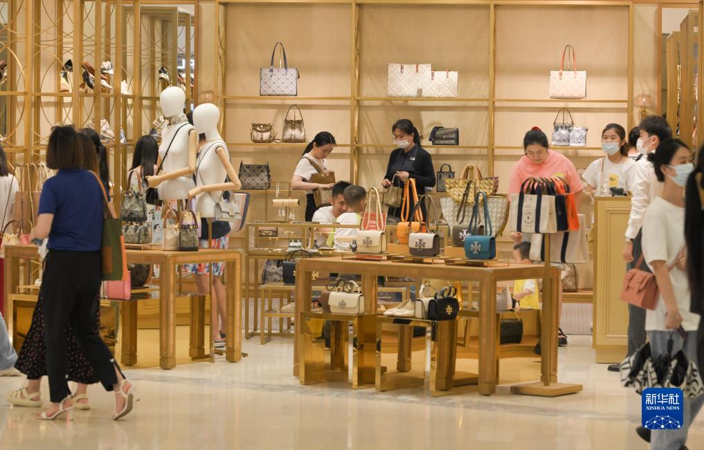 8月5日,游客在中免集團海口日月廣場免稅店選購商品。